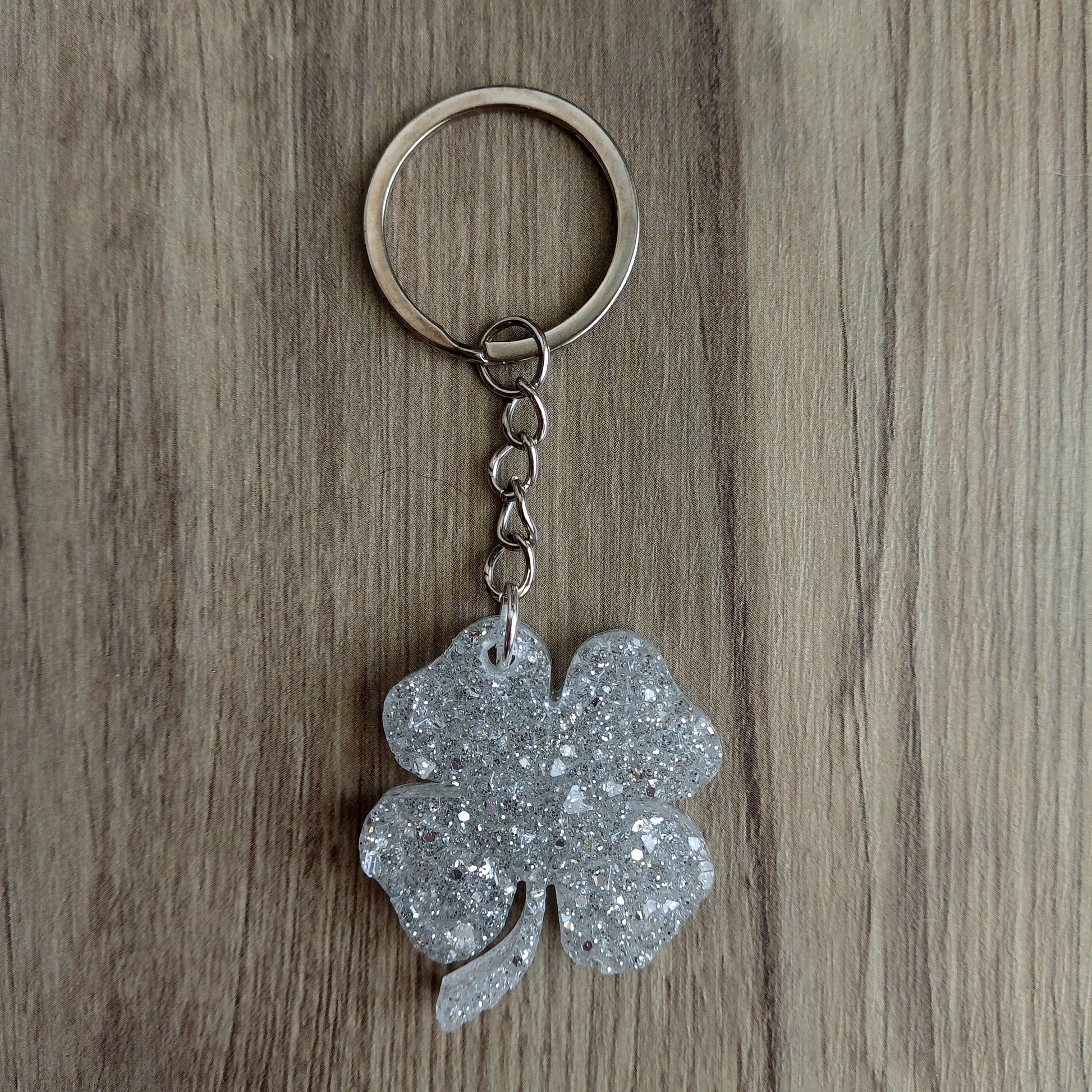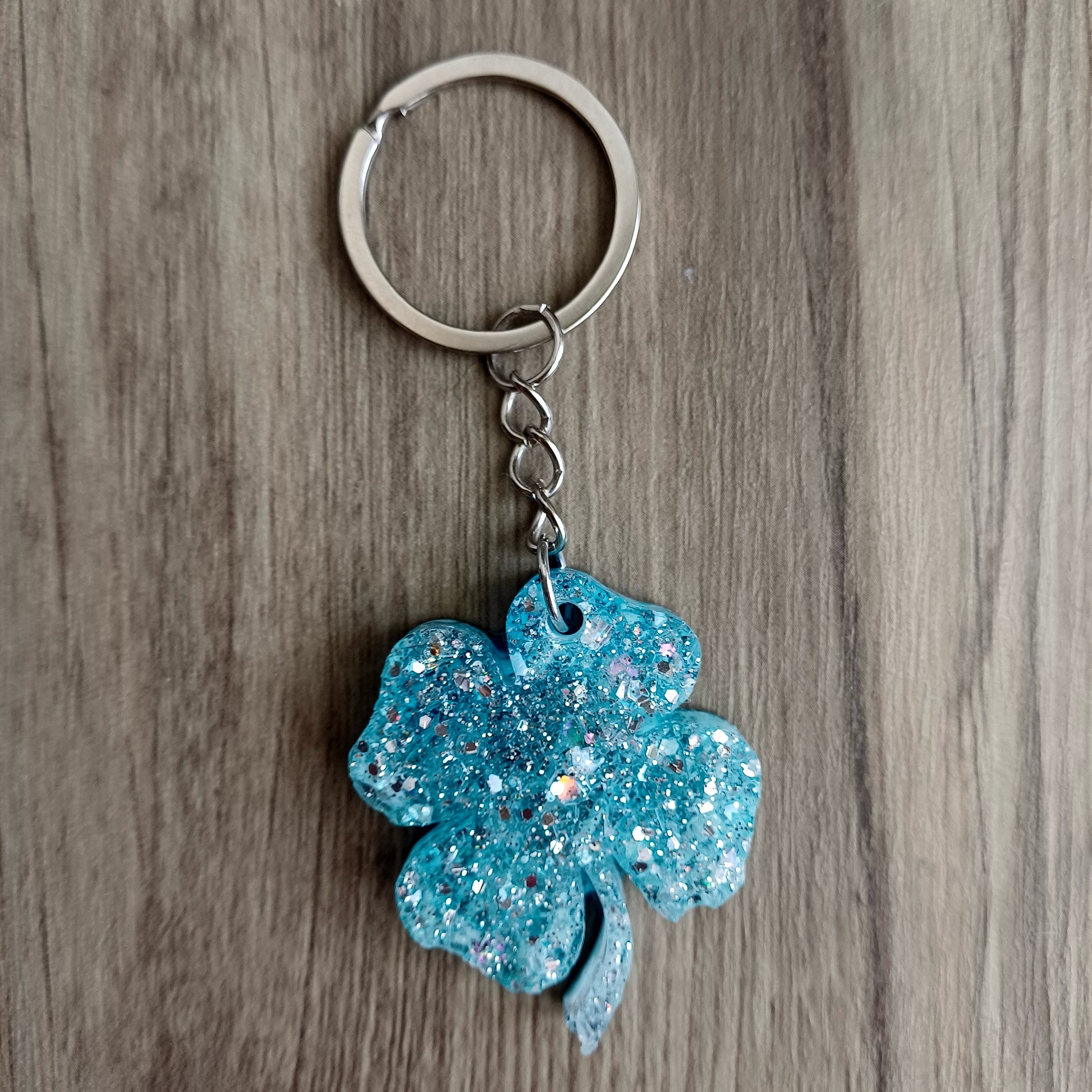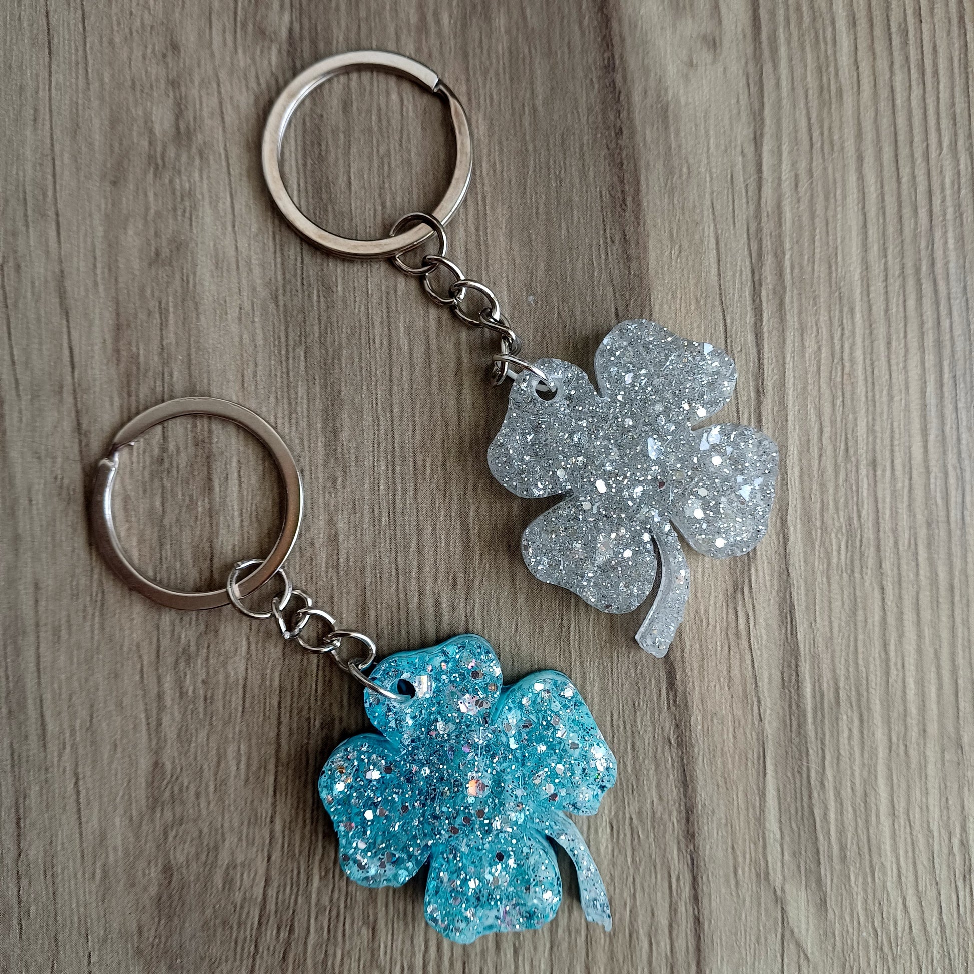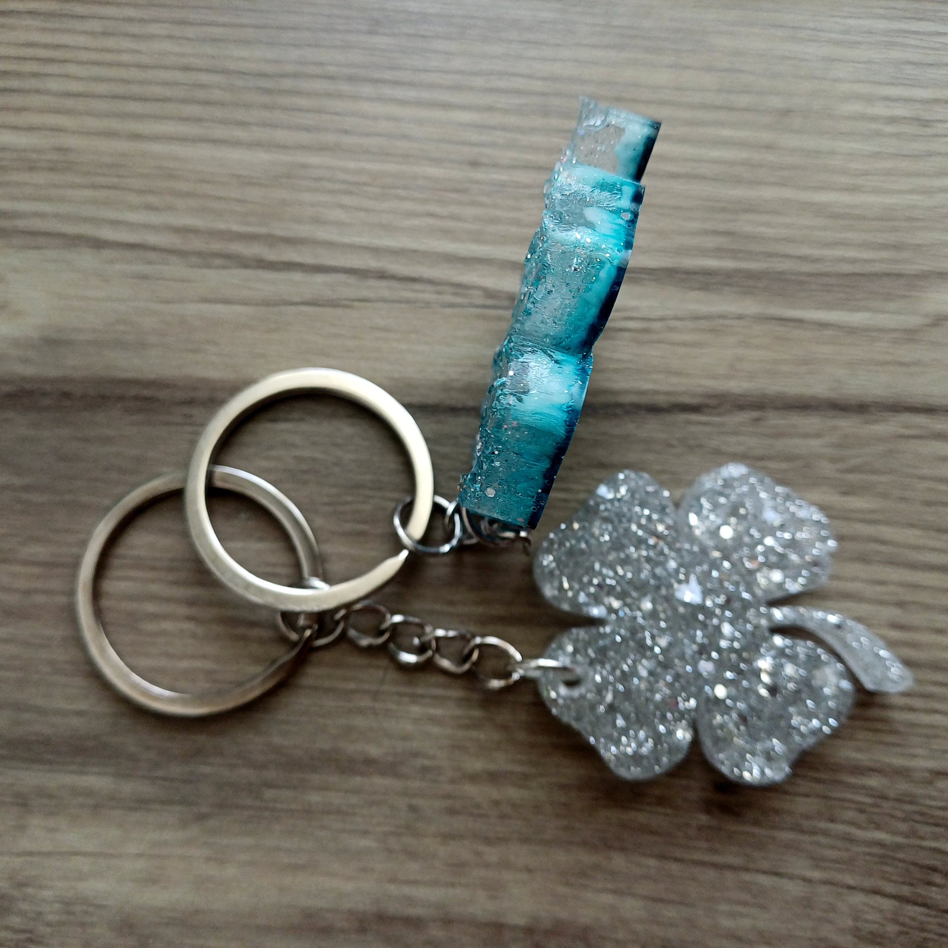 Resina, coloranti, glitter, clip portachiave, portachiavi con anelllo diametro 2.8-3.0 cm.