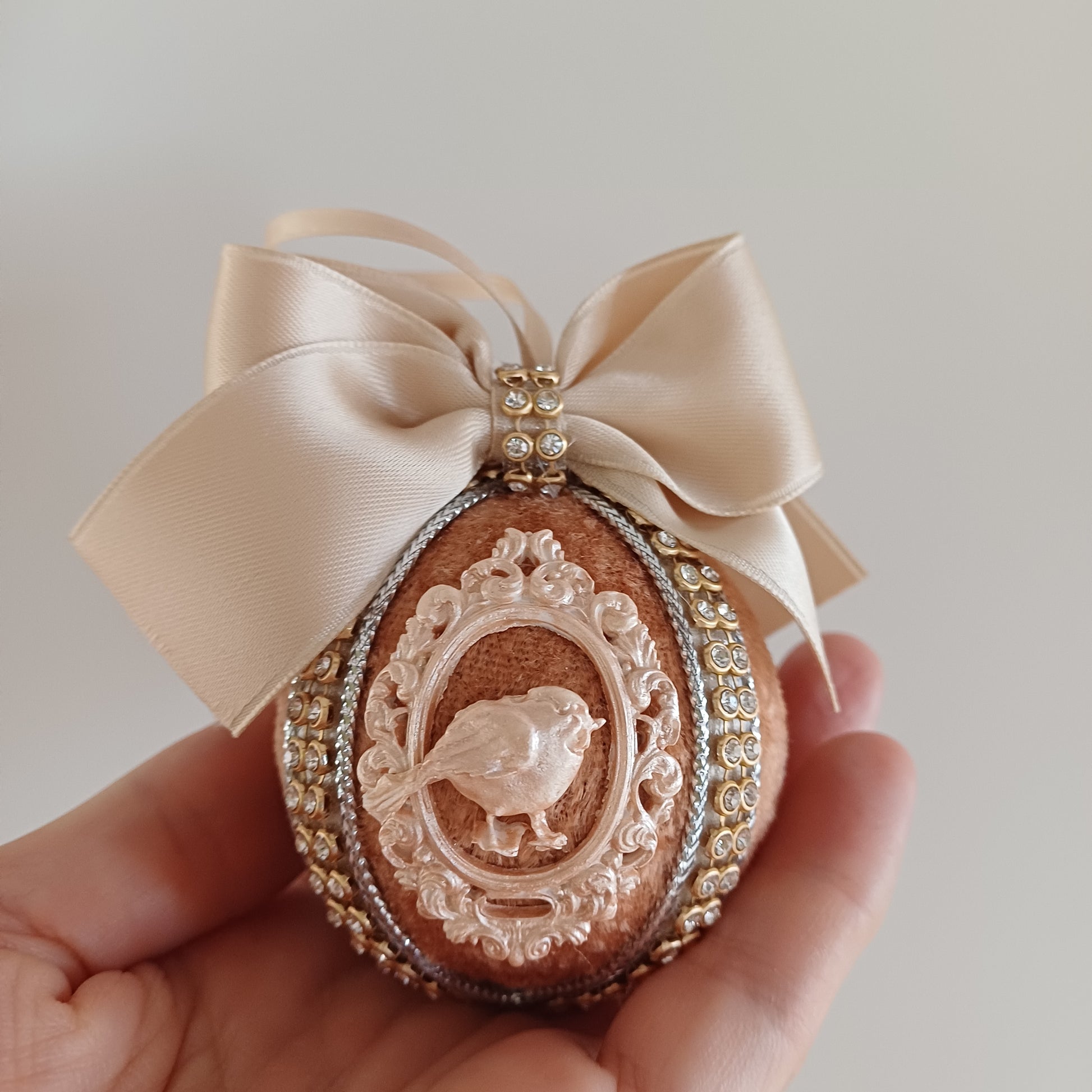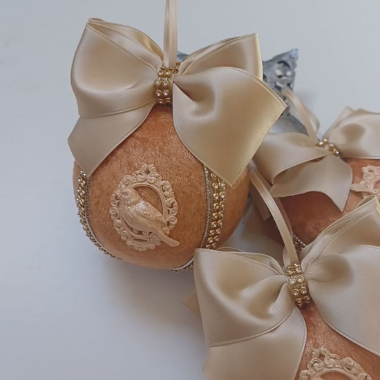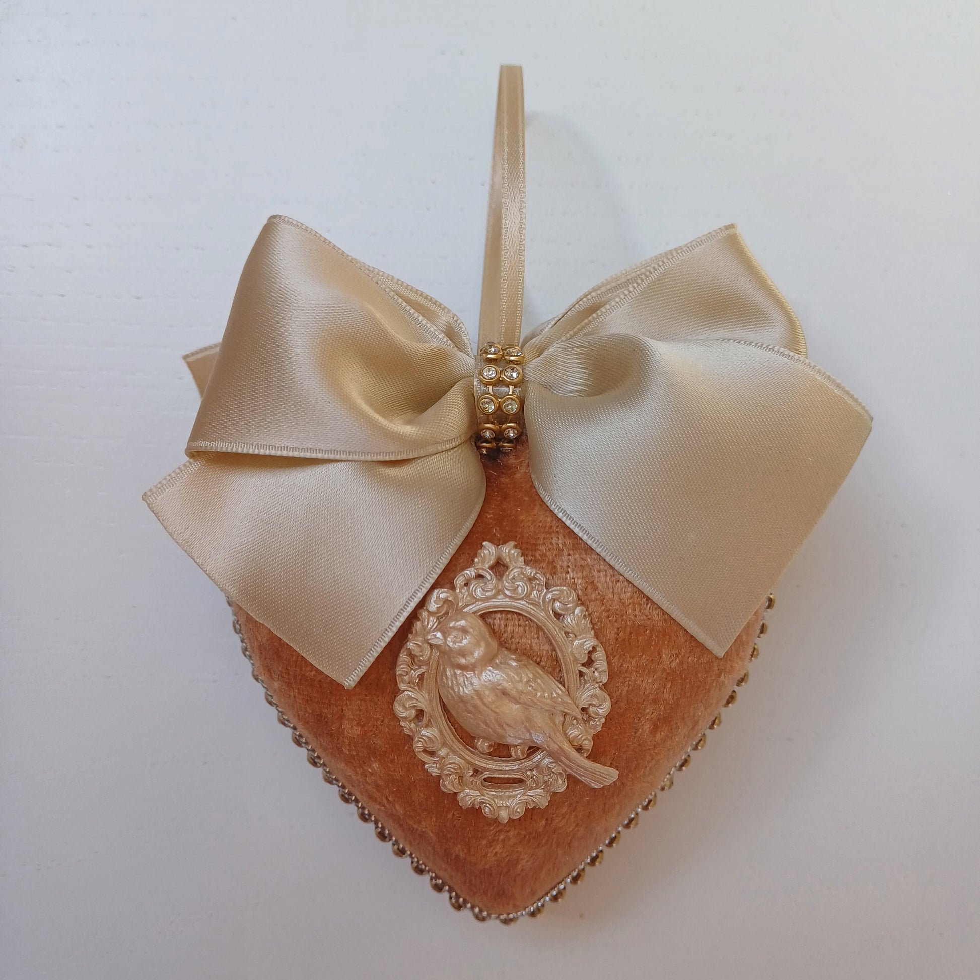 La collezione è stata creata in ciniglia arancione e finitura argento. Modanatura con motivi uccelli fatta e pitturata a mano. Fiocchi a due lati in colore beige aggiungono eleganza.